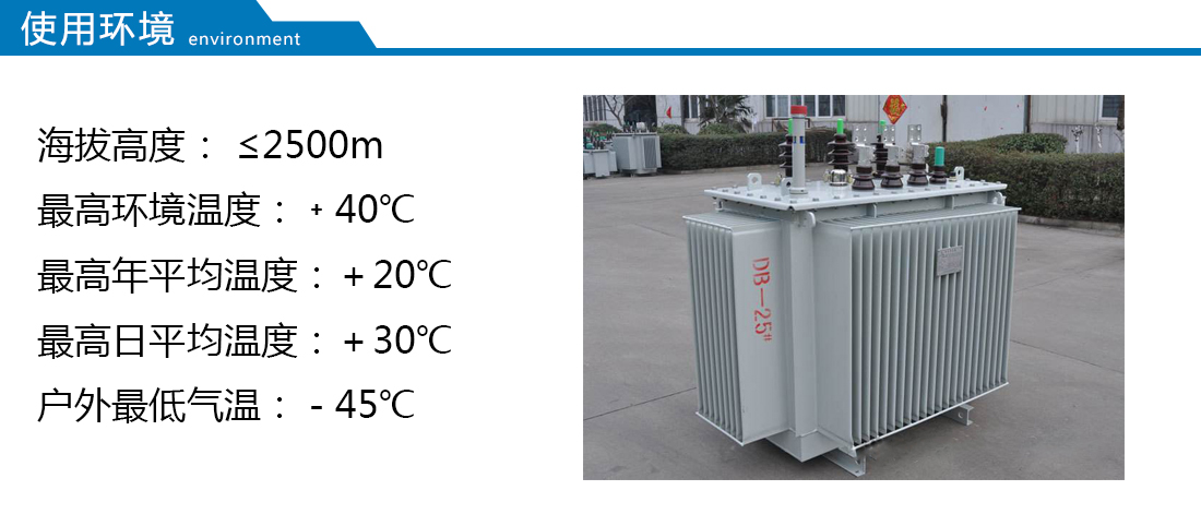 此類產(chǎn)品適用于交流50(60)Hz,三相最大額定容量2500kVA(單相最大額定容量833kVA,一般不推薦使用單相變壓器),可在戶內(nèi)(外)使用,容量在315kVA 及以下時(shí)可安裝在桿上,環(huán)境溫度不高于40℃,不低于-25℃,最高日平均溫度30℃,最高年平均溫度20℃,相對(duì)濕度不超過90%(環(huán)境溫度25℃),海拔高度不超過1000m。
