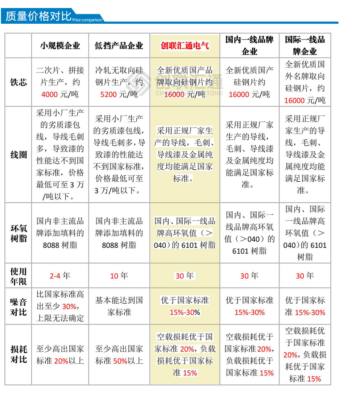 以800kVA為例,△P0為1.05kW;兩種型式配電變壓器的負載損耗值是一樣的,則△Pk=0, ,便可計算出一臺產(chǎn)品每年可減少的電能損耗為: