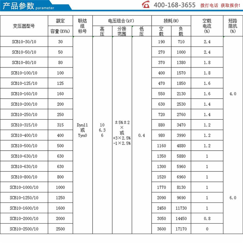 10kv級 SCB10(6)雙電壓轉換變壓器