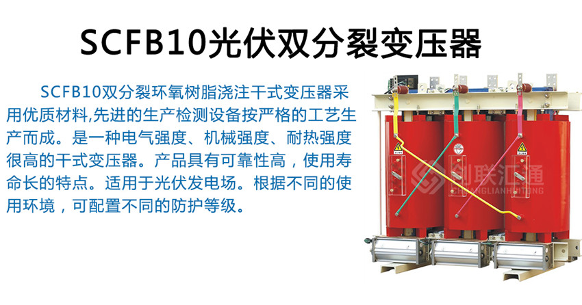SCFB10雙分裂環(huán)氧樹脂澆注干式變壓器采用優(yōu)質(zhì)材料,先進(jìn)的生產(chǎn)檢測設(shè)備按嚴(yán)格的工藝生產(chǎn)而成。是一種電氣強(qiáng)度、機(jī)械強(qiáng)度、耐熱強(qiáng)度很高的干式變壓器。產(chǎn)品具有可靠性高,使用壽命長的特點。適用于光伏發(fā)電場。根據(jù)不同的使用環(huán)境,可配置不同的防護(hù)等級。