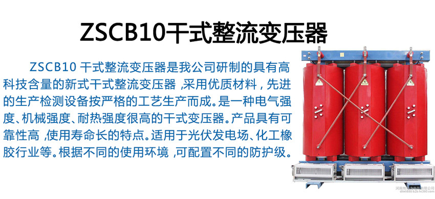 ZSCB10雙分裂環氧樹脂澆注整流變壓器是我公司研制的具有高科技含量的新式干式整流變壓器,采用優質材料,先進的生產檢測設備按嚴格的工藝生產而成。是一種電氣強度、機械強度、耐熱強度很高的干式變壓器。產品具有可靠性高,使用壽命長的特點。適用于光伏發電場、化工橡膠行業等。根據不同的使用環境,可配置不同的防護級。